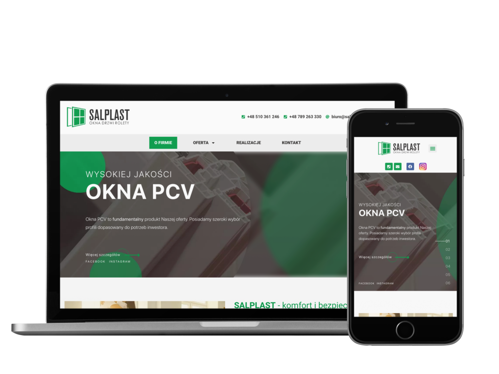 W naszym portfolio możemy pochwalić się projektem strony internetowej dla firmy Salplast, która specjalizuje się w montażu okien PCV, drzwi, rolet oraz bram garażowych na terenie całej Polski.